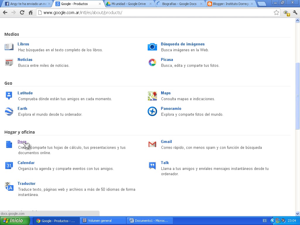 este es un trabajo practico muy sencillo de la materia NTICX que consistía de hacer una entrada a google docs o google drive. Google docs también conocida como la "nube" de la Internet es muy sencillo de utilizar y también es muy practico ya que podes hacer una entrada desde tu pc y abrirlo desde cualquier otra pc del mundo.El trabajo consistía de redactar una pequeña biografía de nuestras vidas y subirlo a google docs,luego debíamos subirlo a la pagina del colegio.